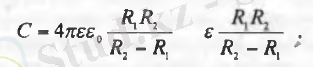 в) Сфералық конденсатордың сыйымдылығы, өрнек бойынша