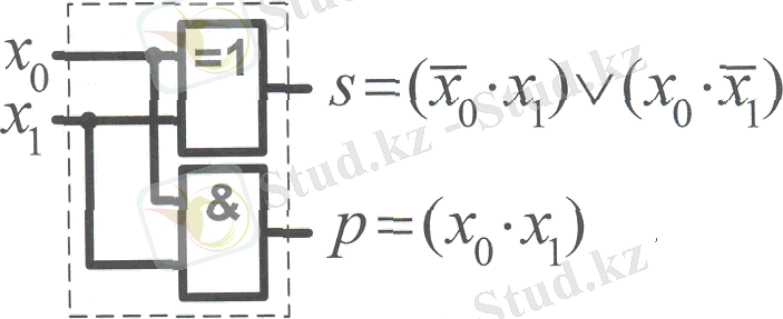 Сонымен, тасымалдау ЖӘНЕ функциясының көмегімен, ал қосынды сигналының өндірілуі - a және b сандарының модулі екі бойынша қосумен орындалады. 12. 2 - суретте осы элементтерден құрылған жартылай сумматордың схемасы көрсетілген.