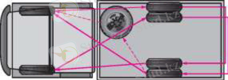 3-сурет Д оңғалақтардың орнын ауыстыру схемасы: ► - доңғалақтардың орнын ауыстыру бағыты