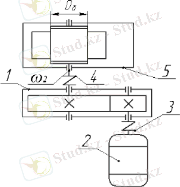 Сур. 5-шөмішті элеватор жетегінің схемасы 1-редуктор; 2-Электр қозғалтқышы;