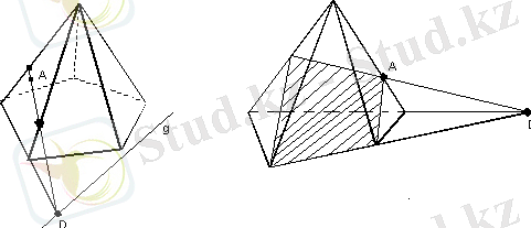 6-суретте төртбұрышты пирамиданың табан қабырғасымен оның бүйір қырларының бірінде жатқан А нүктесі арқылы өтетін жазықтықпен қиғанда қимасы салып көрсетілген.