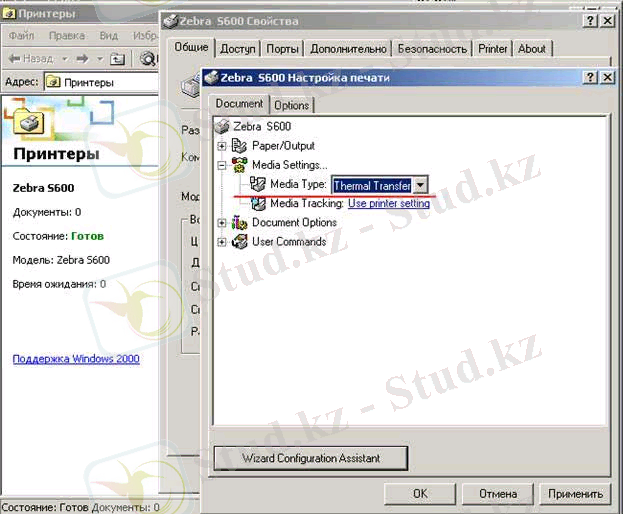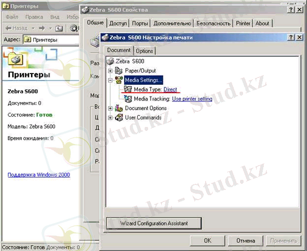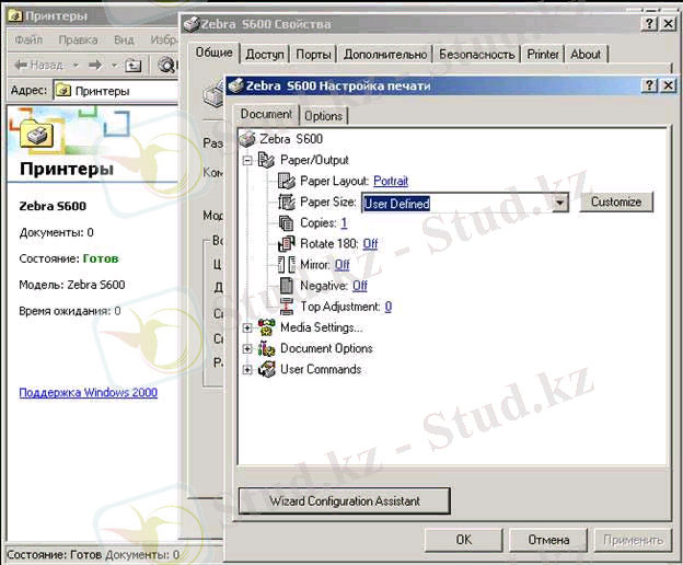 Бөлім 1. ZEBRA S600 принтерін орнату және жөндеу (ОС Windows 2000 SP4)