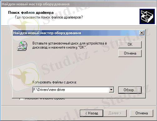 Пайда болған терезеде драйверлері бар дискке Drivers\new driver қаттамасына жол көрсету, «ОК» түймешесін, кейіннен («Далее») «Одан әрі» басу (сурет 4) :