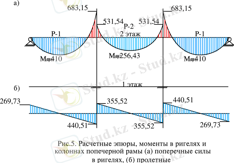1. 2 ригельдің есептік қималарындағы иілу моменттерін есептеу.