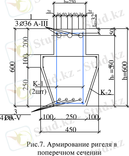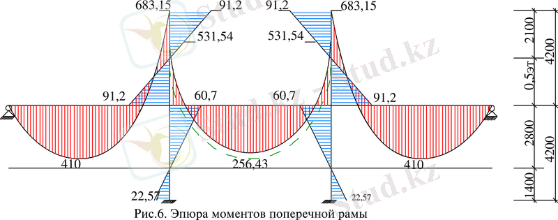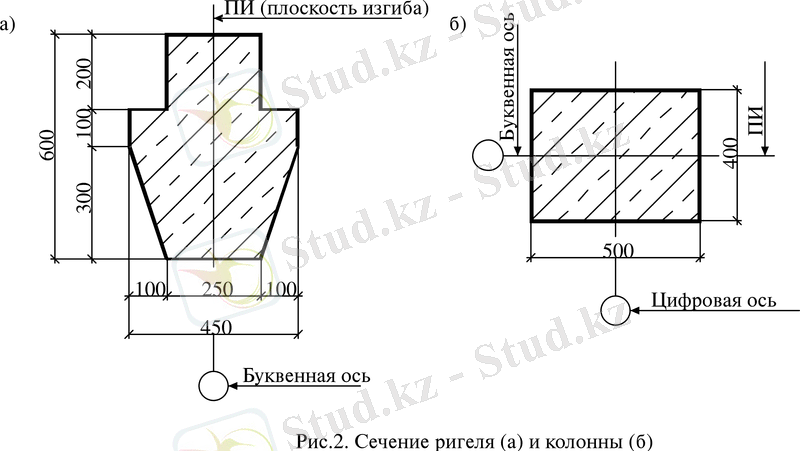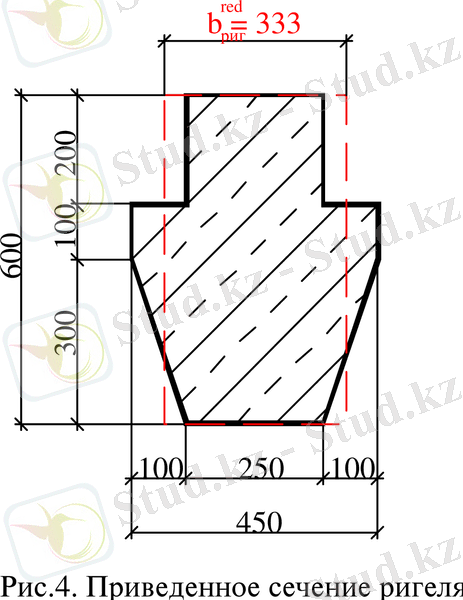 Мұнда -ригельдің қысқартылған көлденең қимасы, яғни көлденең қиманың трапеция тәрізді пішінін тіктөртбұрышқа келтіру: = 0, 6= ;
