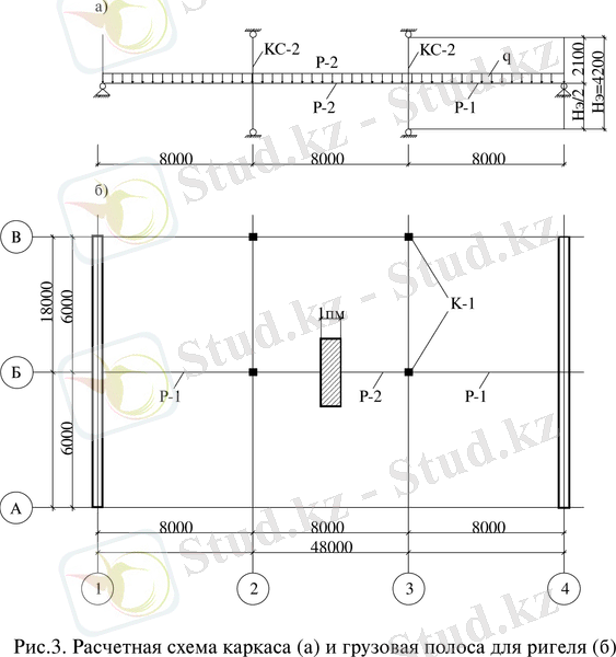 Сур. 3. Қаңқаның есептік сызбасы (А) және ригельге арналған жүк жолағы (б)