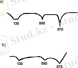 Мұнда үшмэндотермикалық эффек анықталған, бірінші - 130 0 С, болмашы тиімділігі 580 0 С, модификациялық айналуы В Sio 2 →ď Sio 2, үшіншісі диссоциациалы корбанат [20] . Мойынқұм орнының термоаналитикалық қиссық сызықтар (3 сурет) . Эндотермикалық тиімділігі 580 0 С және карбонатты кальций Барханды құм. Аса кең орнындағы құмның кварц құрам Мойынқұмды Бархан құмына қарағанда едәуір аздау, 870 0 С