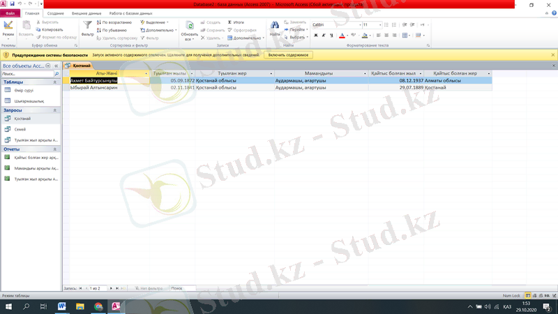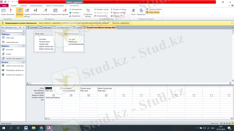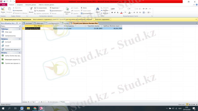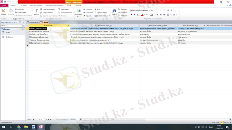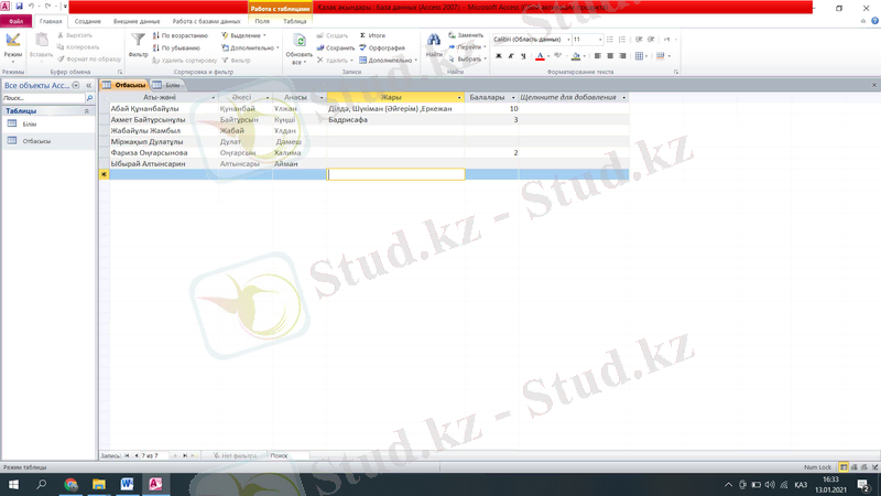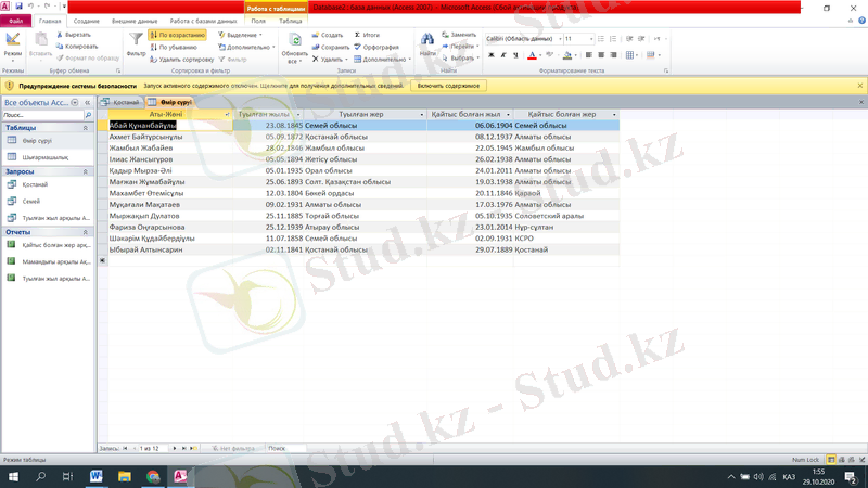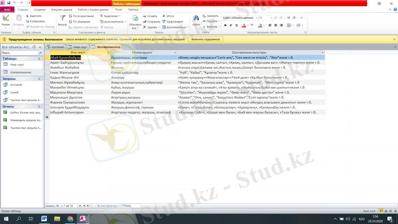 Қазақ әдебиетінің тарихы және Қазақ ақындары деректер қорын MS Access жүйесінде жобалау
