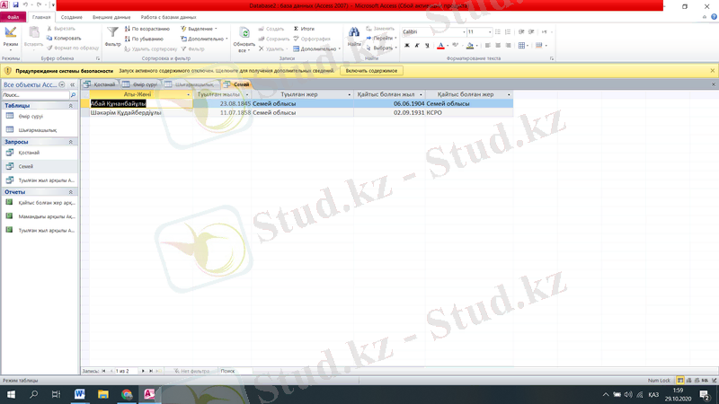 - Мәліметтер қорын құру және оған мәліметтер енгізу;