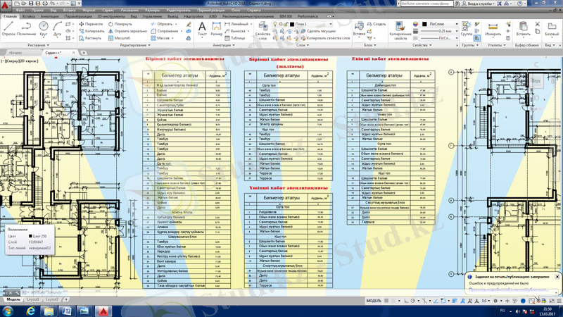 Барлық бөлмелер ауданы нормаларға сәйкес қабылданып, кесте түрінде келтірілген.