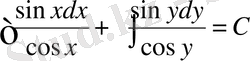 - айнымалылары бөлектенген теңдеу алынады. (9) формула бойынша теңдеудің екі жағын да интегралдасақ,