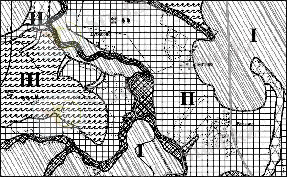 8. Әрі қарай, цифрланған контур картасын пайдаланып, әр контурдың ауданын бөлек өлшеп, 2 және 3 бағандарды толтырыңыз. Алдымен, үшінші бағанды қарындашпен толтырыңыз. Алынған цифрларды 3-бағанда қорытындылаймыз және нәтижені 1-бағандағы индикатормен салыстырамыз (Суммируем полученные цифры в графе 3 и сверяем результат с показателем в графе 1), контурлар мен бүкіл бөлімнің аудандарының қосындысы сәйкес келуі керек. Егер бұл шарт орындалса, онда 3-бағандағы барлық көрсеткіштерді қаламмен жазуға болады.