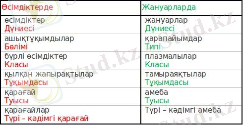- тіршілік формасы (шөптерді, бұталарды, көкөністер мен жемдік дақылдарды, ағаштарды ажырату) ;