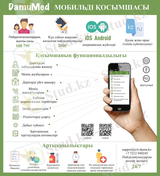 "DamuMed" қосымшасында келесі мүмкіндіктер бар: