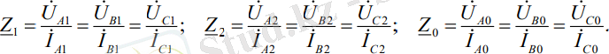 Тура, кері немесе нөлдік реттіліктің фазалы кернеулерінің, токтардың сәйкесті симметриялы құраушыларына қатынасы тура Z 1 , кері Z 2 және нөлдік Z 0 реттіліктердің комплексті кедергілері деп аталады