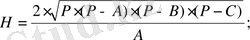 мұндағы A, B, C - үшбұрыштың қабырғалары. Олар мына формулалар бойынша анықталады: