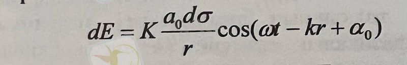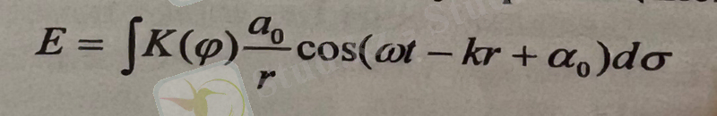 Осы өрнектегі ( ꞷt+α0) - ∑ толқындық беті орналасқан жердегі тербеліс фазасы, k=2π/λ толқындық сан, r беттін dꝹ элементінен P нүктеге дейінгі қашықтық. α0 көбейтіндісі dꝹ орналасқан жердегі жарық тербелісінің амплитудасымен анықталады.