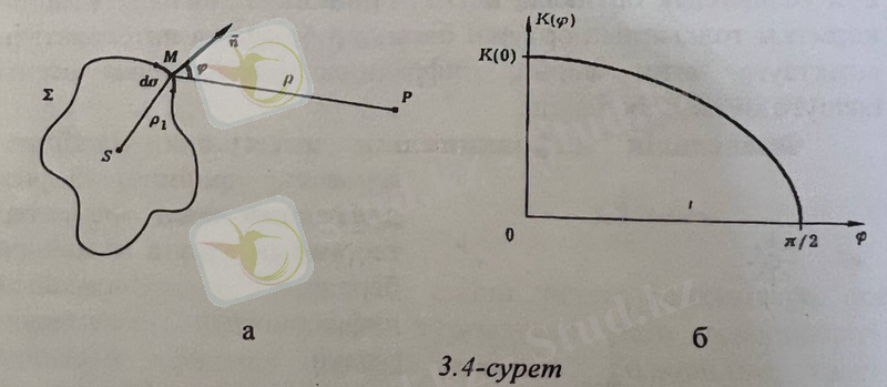 К коэффиценті dꝹ ауданға n нормаль мен dꝹ дан нүктеге жүргізілген түзу бағытының арасындағы φ бұрышқа тәуелді. Осы коэффицент φ=0 болғанда ең үлкен, φ=π/2 болғанда нөлге айналады