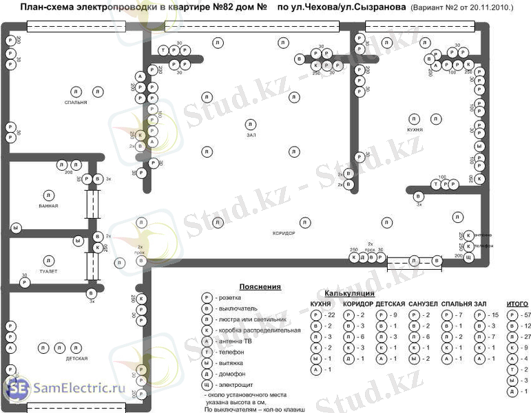 Жоба қажет! Тек жоба сізге болашақта түзету өте қиын болатын барлық ұсақ-түйектерді электрмен жабдықтау туралы ойлануға мүмкіндік береді. Жақсы жоба үшін алдымен өз қажеттіліктеріңізді шешіп, содан кейін электр сымдарының схемасын жасау керек. Жоба кәсіби және жеке HPV болуы мүмкін (адамға түсінікті сурет) . Жобада ажыратқыштардың, розеткалардың, шамдардың және басқа да электр жабдықтарының орналасуы міндетті түрде көрсетіледі. Мысал 1-сурет.