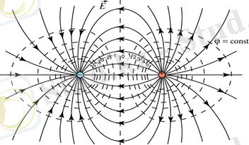 3-сурет. Электр диполь электр өрісінің кернеу сызықтары