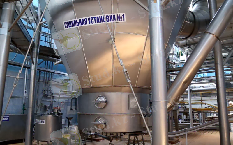 шашыратқыш кептіргіш. Соңғы қадам үшін пайдаланылады. Бұл жабдықтың жұмыс істеуі нәтижесінде шикізаттан ылғал қалдықтары бөлінеді. Бұл дайын өнімнің жарамдылық мерзімін ұзарту үшін маңызды. Ақырғы нәтиже - еркін ағынды, түйіршікті, еритін ұнтақ. Кептіргіш қарапайым технология бойынша жұмыс істейді: арнайы сорғы шикізатты бүріккіш саптамаларға айдайды, оның ішінде ол құрғақ массаға айналады. Жаңа буын кептіргіштері қаптау жүйелерімен жабдықталған. Сондықтан зауыттар қаптамаға арналған құрылғыларды бөлек сатып алмайды.