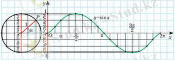 Енді әрбір тригонометриялық функцияның графигін салуға тоқталайық.