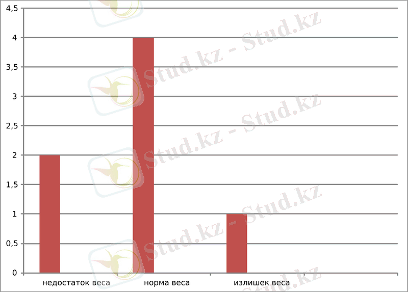 Мен сыныптастарыма формула бойынша идеалды салмақты анықтауды ұсындым. Зерттеу нәтижелерін мен диаграмма түрінде ұсындым