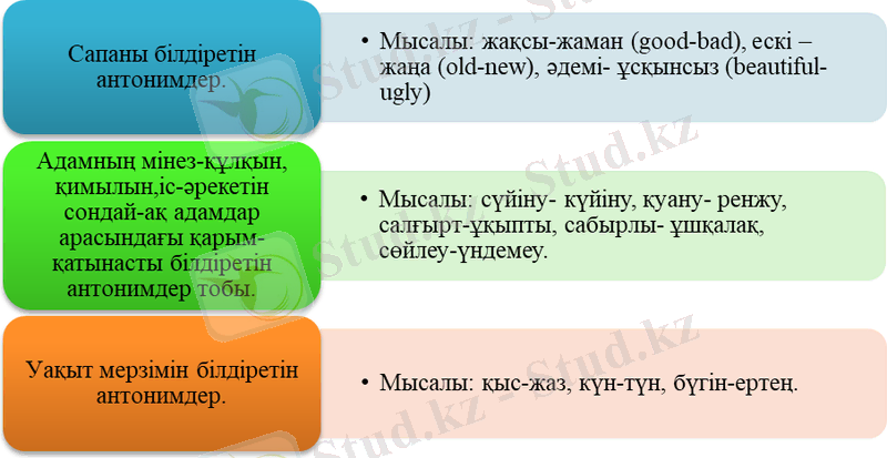 Сонымен қатар, антонимдерді үш топқа бөліп қарастыруға да болады (сур. 2) :