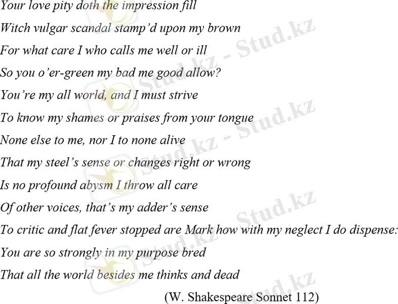 Егер қазақ әдебиетінде « Енді менің қағбам орнынан көшіп, күншығысым -күнбатыс боп барады » (М. Әуезов) деп айтылса, онда ағылшын тілінде: « Still, as I see it, marriage is a very sacred thing and children are a blessing not a curse (Theodore Dreiser «An American Tragedy») » екендігі табылды.