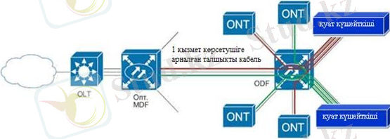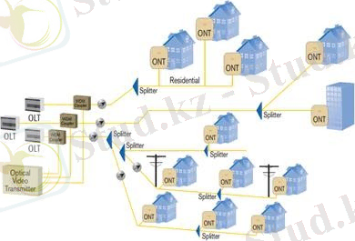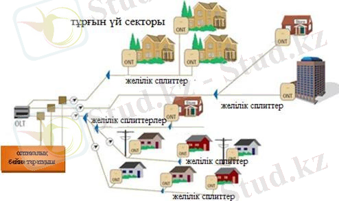 FTTX технологиясын пайдаланатын абоненттік қатынау желісінің мүмкіндігіСурет 1. 5 - Пассивті оптикалы желі (PON) архитектурасы