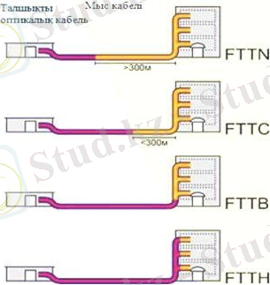 - FTTB (Fiber to the Building) - талшықты құрылыс;