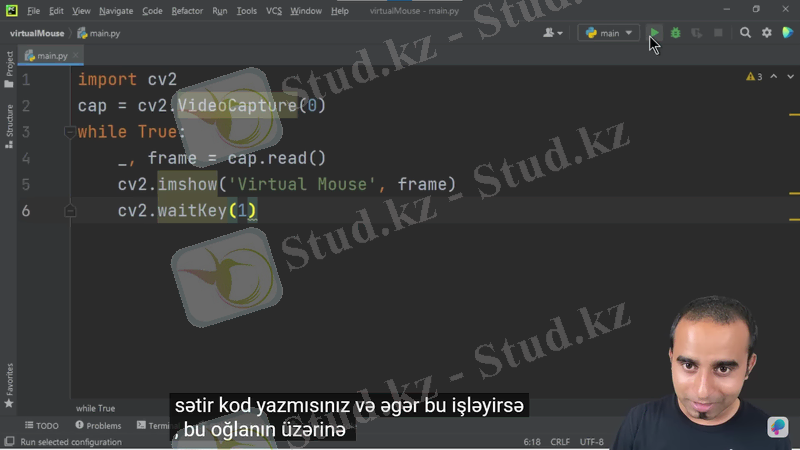 1. Алдымен, 6 қатар код жазғанда, бізде веб-камера ашылып, экраннан өзімізді көре аламыз. Камерада өзімізді үздіксіз көрсету үшін “while” циклін қосамыз. Оны 1. 2-суреттен көруге болады.