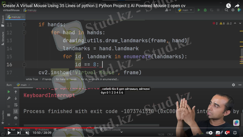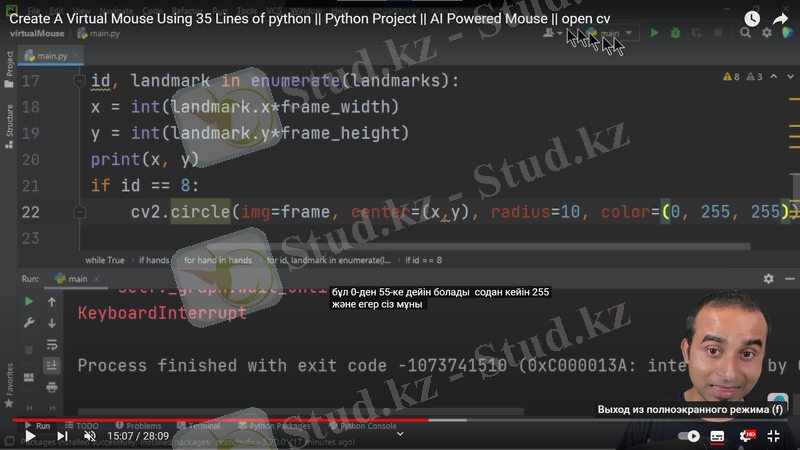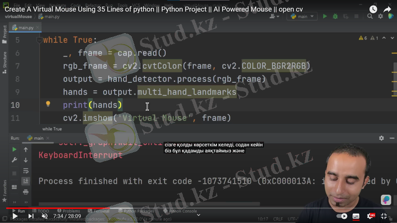 PyCharm ортасында виртуалды тінтуірді құру: қолмен және көзбен басқару
