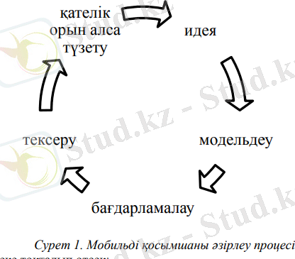 Әрбір құрылатын қосымшалар қолданылуы ортасы мен пайдалану мақсаты әртүрлі болуы мүмкін және құрастырылу әдіснамаларыда үнемі өзгеріп отырады, бірақ бұл мобильді қосымшаларды әзірлеу мен құрастыру кезіндегі процесс стандартты болып келеді. Мобильді қосымшаларды әзірлеу процесін шиыршықталған түрде бейнелеуге болады (1-сурет) .