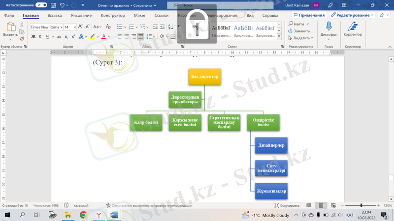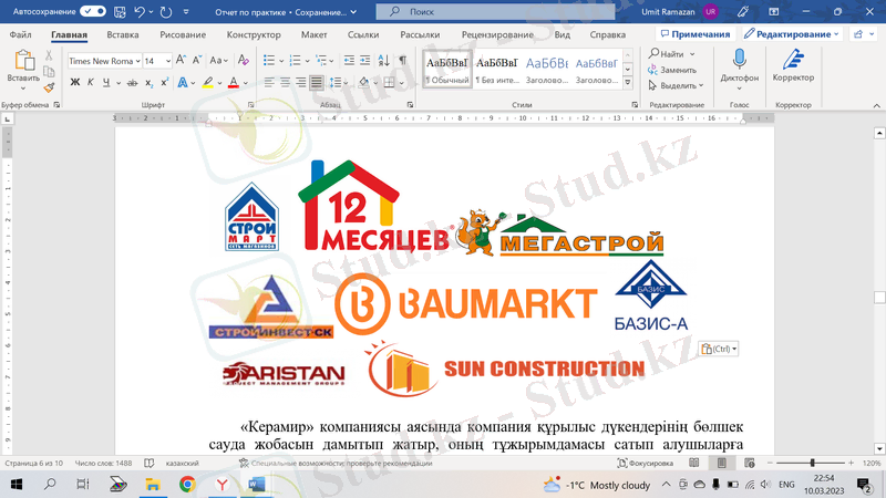 Керамин-Астана ЖШС мысалында бухгалтерлік есеп пен аудитті ұйымдастыру жөніндегі өндірістік тәжірибе есебі