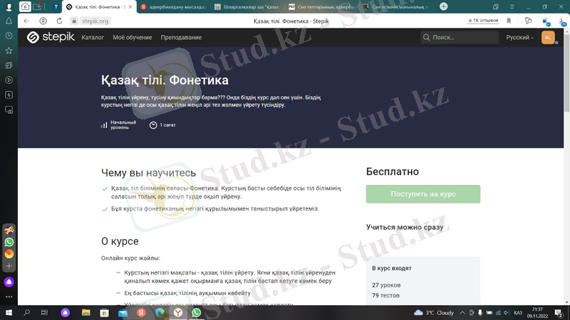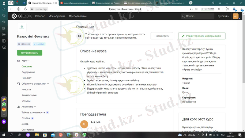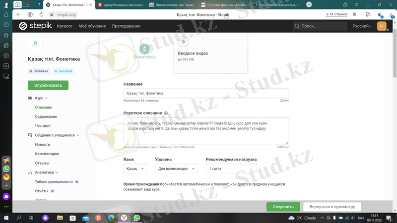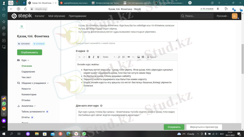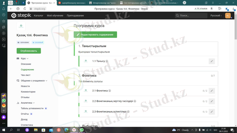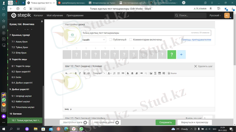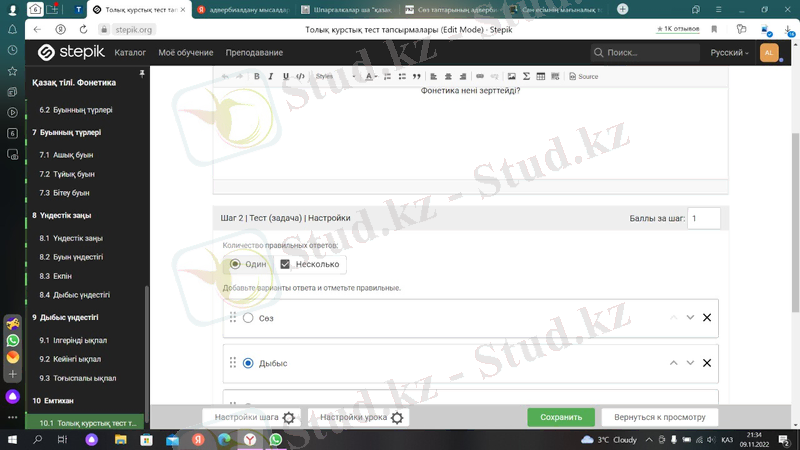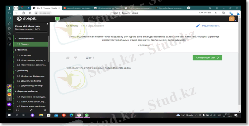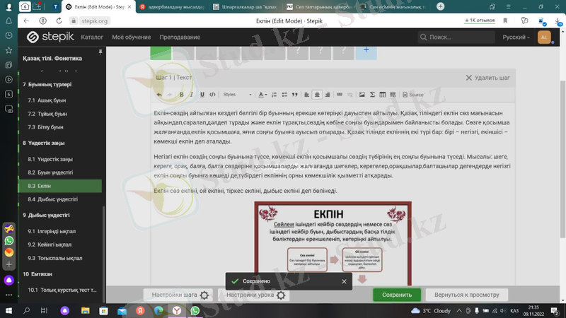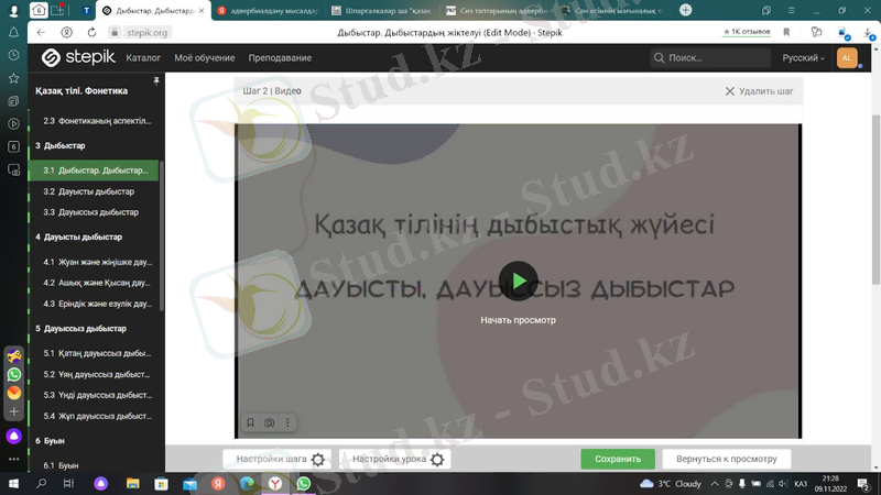 Stepik платформасында қазақ тілі (фонетика) пәнінің сандық оқу курсын құру