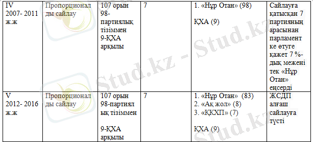 "Нұр Отан" партиясының жеңісімен елімізде қалыптасқан үстем партиялық жүйе Мәжілістің ІV сайланымынан VII сайланымға дейін жалғасты.