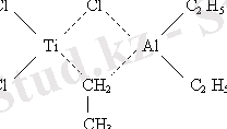 Титанның тетрахлоридінің TiCl 4 үшэтилалюминиймен Al(C 2 H 5 ) 3 әрекеттескендегі түзілетін комплекс өнеркәсіпте кеңінен қолдау тапты. Мұндай әрекеттесуде бірқатар химиялық реакциялар өтеді, олардың нәтижесінде өтпелі металл қосылыстарының алкилденуі және оның TiCl 3 дейін тотықсыздануы жүреді. Тұнбаға түскен титанның үшхлориді кристалдары бетінде төртмүшелі комплекс түзеді: