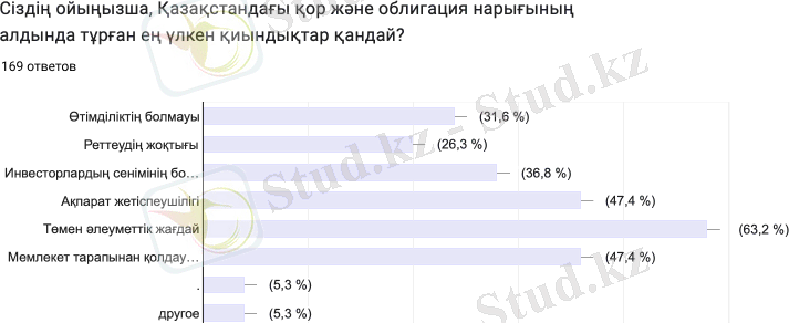 - Сіздің ойыңызша, Қазақстандағы қор және облигация нарығының алдында тұрған ең үлкен қиындықтар қандай?
