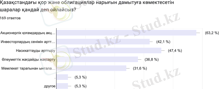 - Қазақстандағы қор және облигациялар нарығын дамытуға көмектесетін шаралар қандай деп ойлайсыз?