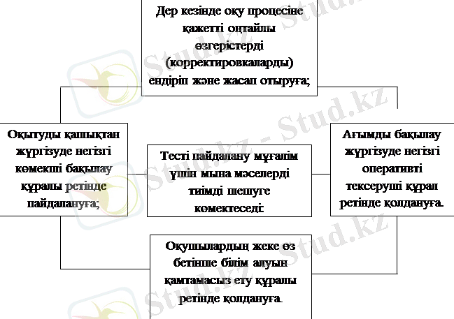 Тесті пайдалану мұғалім үшін мына мәселерді тиімді шешуге көмектеседі: