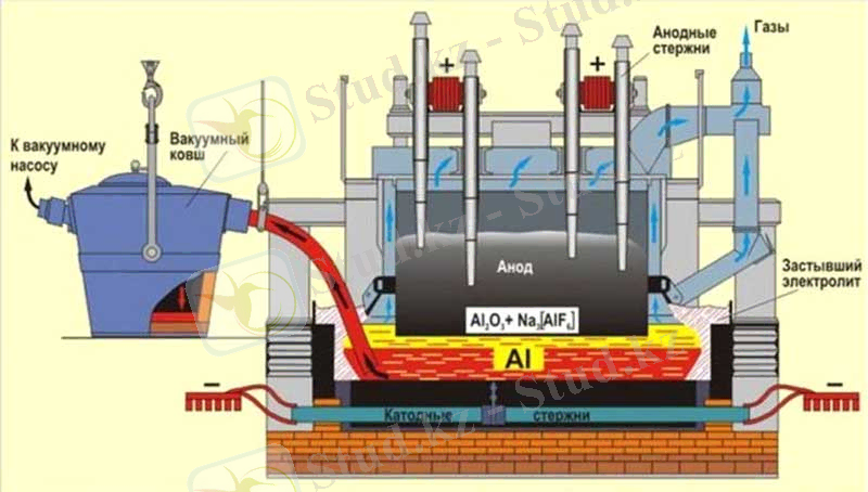 Алюминий электролизінің заманауи процесі табиғи алюминий бар кендерден таза металға дейінгі тәуелсіз өндірістік процесті біріктіреді.