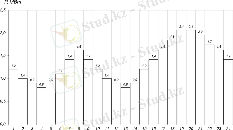 Р ∑ қ. с. =Р (t) +∆Р тұр. + ∆Р айн. + ∆Р өз. мұқ. = 1, 11 + 0, 02 + 0, 07 + 0, 009 = 1, 2 МВт