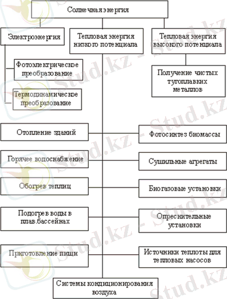 1-сурет. Күн энергиясының мақсаты бойынша жіктелуі