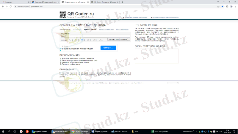 Кодты шифрлау алгоритмі өте күрделі, бірақ соған қарамастан барлық генераторлар кез келген QR кодын санаулы секундтарда жасай алады. Мен QR Coder. ru генераторын қолдандым (2. 3. 1-сурет) .