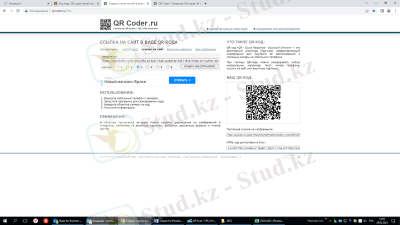 URL адресті көшіріп алғаннан кейін генератордың арнайы сілтемені салатын батырмасына саламыз. Осыдан кейін бізге генератор QR-code-ті шығарып береді (2. 3. 3-сурет) .