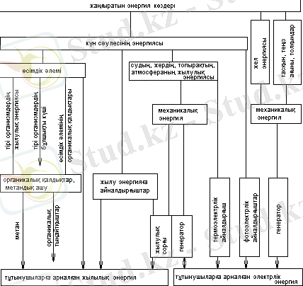 1. 1-сурет. Жаңғыртылатын энергия көздерінің түрлері және олардың басқа энергия түріне түрленуі