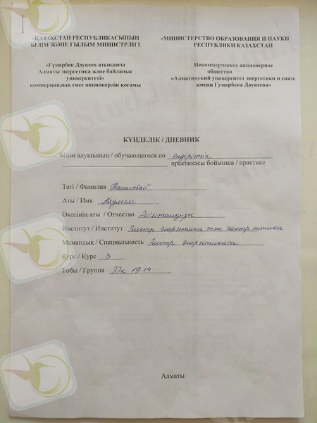 Өндірістік тәжірибе өткен жері: Алматы облысы, Түрксіб ауданы, Земнухова көшесі 9а, ЖШС «АЭМЗ».