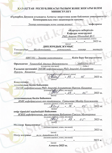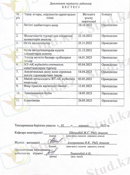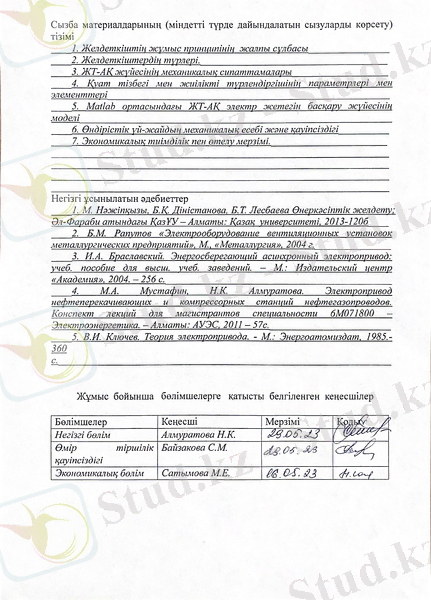 Экономика бөлімінде таңдалған электр жетегін басқару жүйесінің экономикалық тиімділігін дәлелдеді.