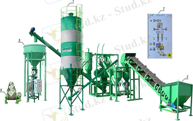 Құрғақ құрылыс қоспаларын өндіру зауытының конструкциясы 1-суретте көрсетілген. 1. 7.